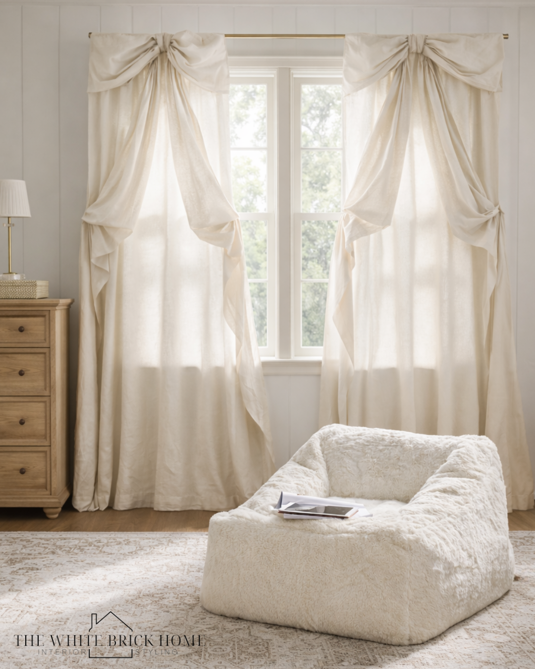 This bedroom is the definition of soft, romantic living—layered neutrals, delicate textures, and feminine details come together to create that signature LoveShackFancy feel.