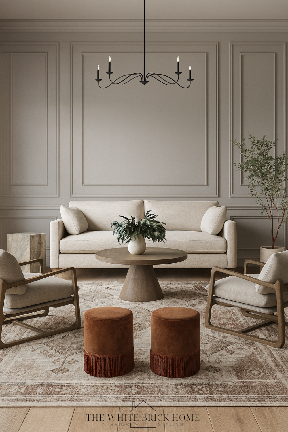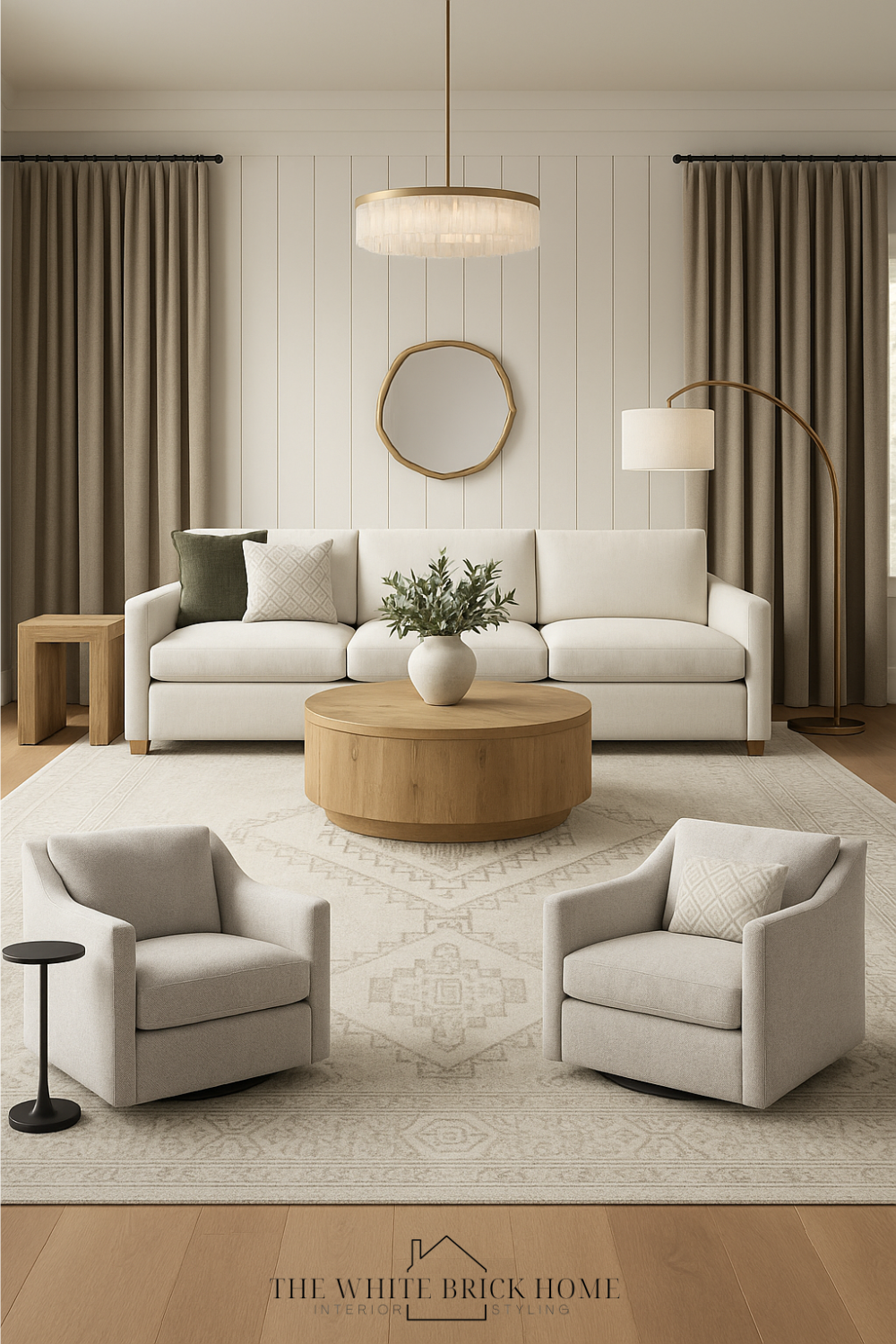 Bring effortless elegance home with this timeless living room design—where warm neutrals, natural textures, and modern comfort create a perfectly balanced space for everyday living.